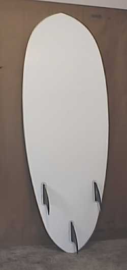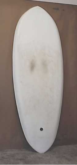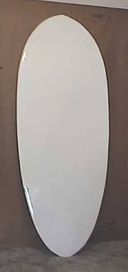 This pintail is 60" long with a 22" width, weighs 5lbs-14ozs and has triple graphite tube stringers. The core is 2.3pcf density IT Arcel, bottom slick skin is LDPE, deck and rail skins are 6pcf polyethylene. O'Fish'L fin boxes need to be routed and installed (per customer requirements), O'Fish'L skegs to be included. Wahoo sealed leash plug to be installed (per customer requirements).
